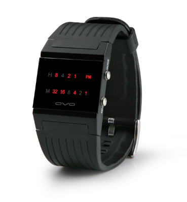 ― One row of LED shows hours (8-4-2-1), add all numbers-lit