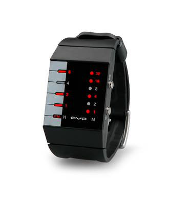 ― One row of LED shows hours (8-4-2-1), add all numbers-lit